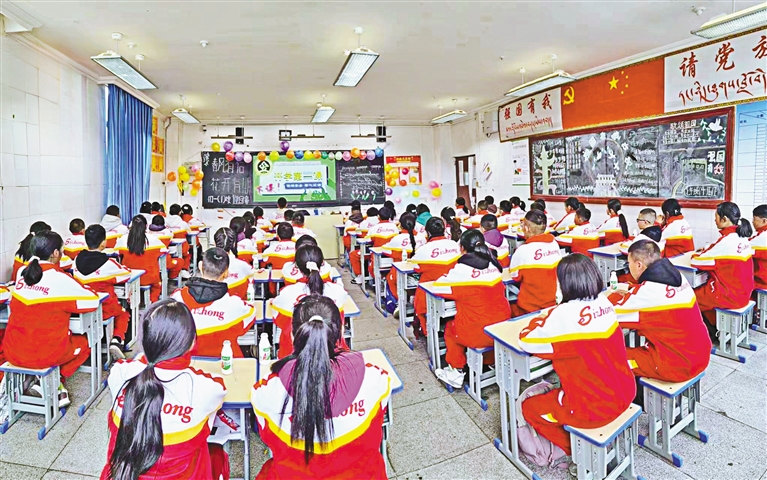在林芝市第二小學,學校布置了喜慶的龍年裝飾,教室文化牆裝點一新,老師們(men) 分發起糖果、牛奶。溫暖的“小驚喜”迅速調動起學生返校的好心情;波密縣完全小學利用寒假對所有教室進行了粉刷、維修,對學生食堂進行了升級改造,幹淨、整潔的校園,讓學生們(men) 格外激動……“今天很開心,見到了老師和同學,也見到了更美麗(li) 的校園。新的學期,我要繼續做好班幹部工作,取得更大的進步。”林芝市第二小學學生索朗次仁信心滿滿地說。
