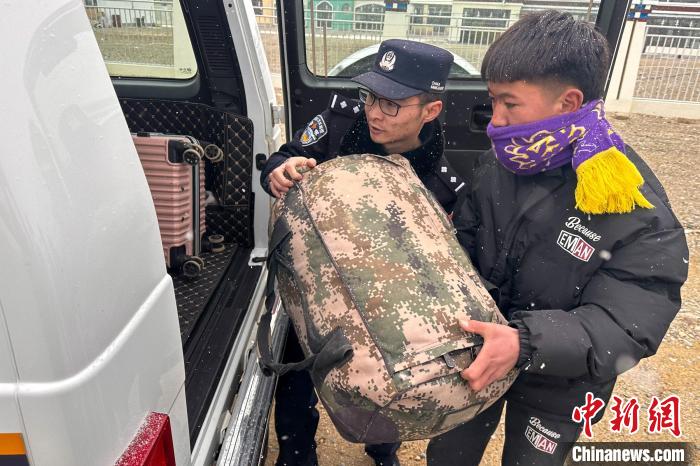 今年開學當天早上,天空還沒亮,雪花細碎地飄著。臨(lin) 行前民警們(men) 仔細檢查車輛狀況並給輪胎綁上防滑鏈,多瑪鄉(xiang) 、日鬆鄉(xiang) 、熱幫鄉(xiang) 、東(dong) 汝鄉(xiang) ,共10輛車在民警的護送下前往各接送點。