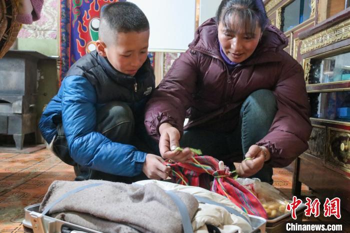 圖為(wei) 格桑媽媽把糌粑等物品裝入格桑行李中。羅發燕 攝
