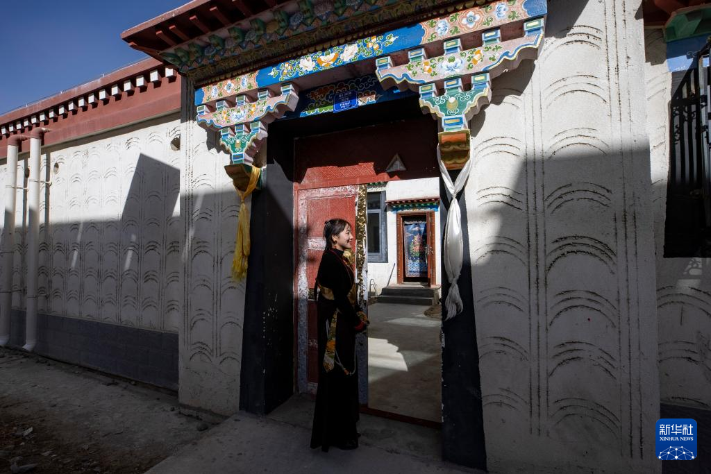 丹增在森布日生態搬遷安置點的新家門前(2024年1月24日攝)。新華社 薑帆 攝