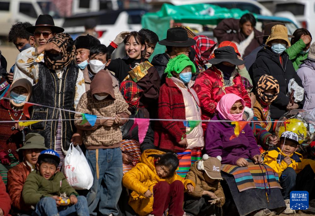 丹增(中)在森布日生態搬遷安置點觀看賽馬(2024年1月24日攝)。新華社 薑帆 攝