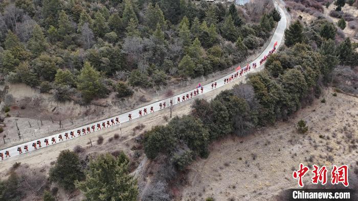 圖為(wei) 森林消防員在山間徒步行軍(jun) 。西藏林芝市森林消防支隊供圖