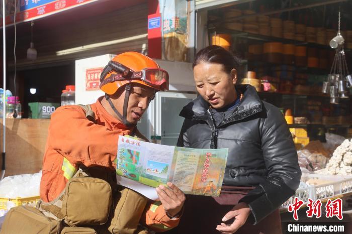 圖為(wei) 消防員正在開展防火知識普及。西繞拉翁 攝