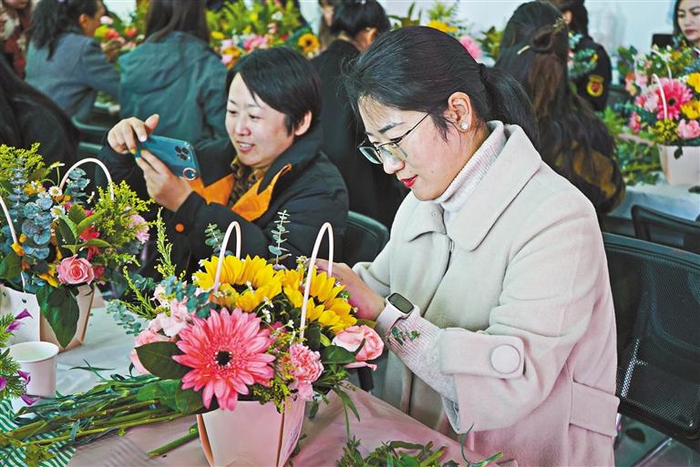 “三八”國際勞動婦女節來臨(lin) 之際,拉薩市堆龍德慶區婦聯在龍創空間舉(ju) 辦花藝培訓和藏式香薰手工製作等特色活動。活動現場,大家邊學習(xi) 邊交流心得,在歡聲笑語中,一件件獨一無二的花藝作品和藏香手工藝作品呈現在大家麵前,每一件作品都飽含了廣大婦女對幸福生活的美好祝願,大家臉上洋溢著燦爛的笑容。