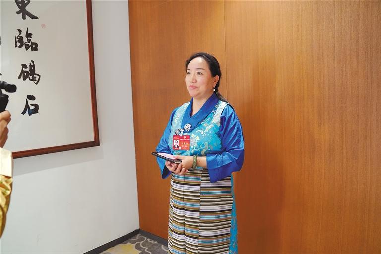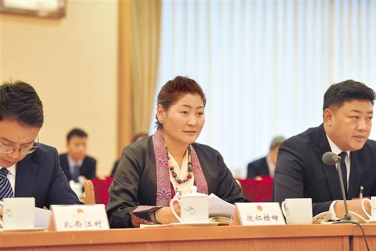 全國人大代表白瑪措在會(hui) 上發言。 旦增西旦 攝