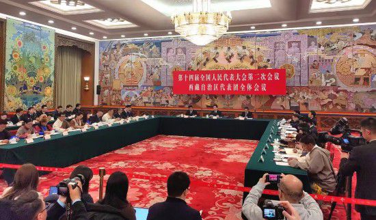 “西藏有大大小小1500多個(ge) 湖泊,‘措’在藏語中就是湖泊的意思,遊客常開玩笑說,這一路上,總是一‘措’再‘措’。”3月6日下午,出席十四屆全國人大二次會(hui) 議的西藏代表團舉(ju) 行開放團組會(hui) 議,全國人大代表、西藏自治區主席嚴(yan) 金海打趣地說。