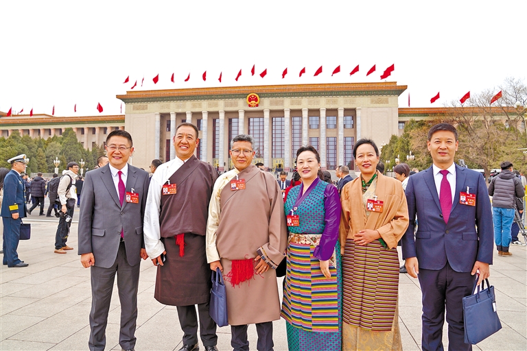 住藏全國政協委員在人民大會(hui) 堂前合影。