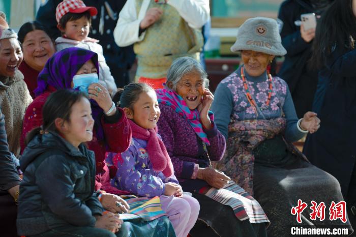 圖為(wei) 阿裏地區紮西崗鄉(xiang) 群眾(zhong) 正在觀看文藝表演。 蔣美靈 攝