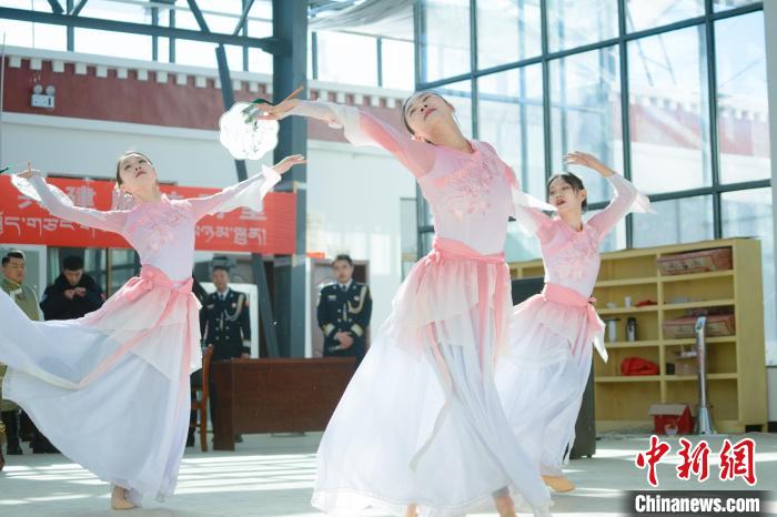 圖為(wei) 西藏出入境邊防檢查總站文藝骨幹為(wei) 群眾(zhong) 表演舞蹈《春頌》 。蔣美靈 攝