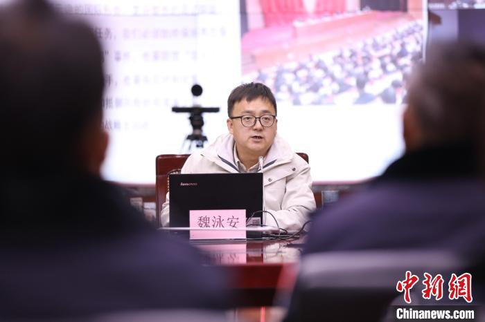 圖為(wei) 四川大學馬克思主義(yi) 學院魏泳安副教授通過視頻會(hui) 議係統向阿裏邊境管理支隊全體(ti) 民警講授理論知識。 胡俊浩 攝