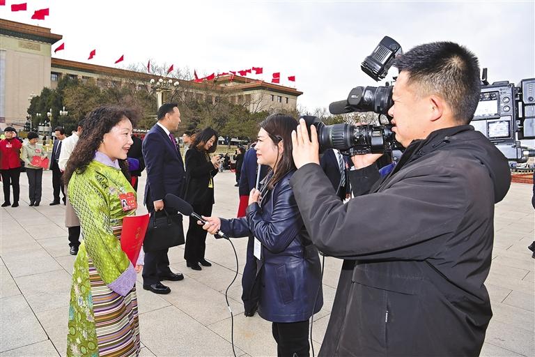 圖西藏全國人大代表白瑪措在接受區內(nei) 媒體(ti) 采訪。