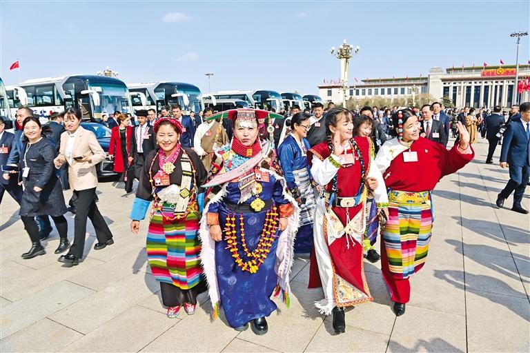 圖為(wei) 西藏全國人大代表步入會(hui) 場。