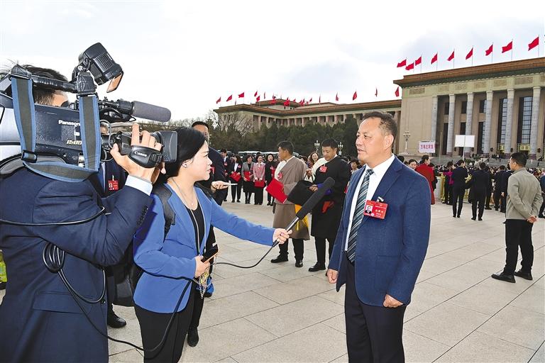 圖為(wei) 西藏全國人大代表羅慶伍接受媒體(ti) 采訪。