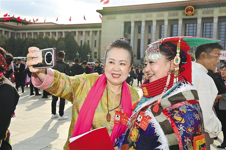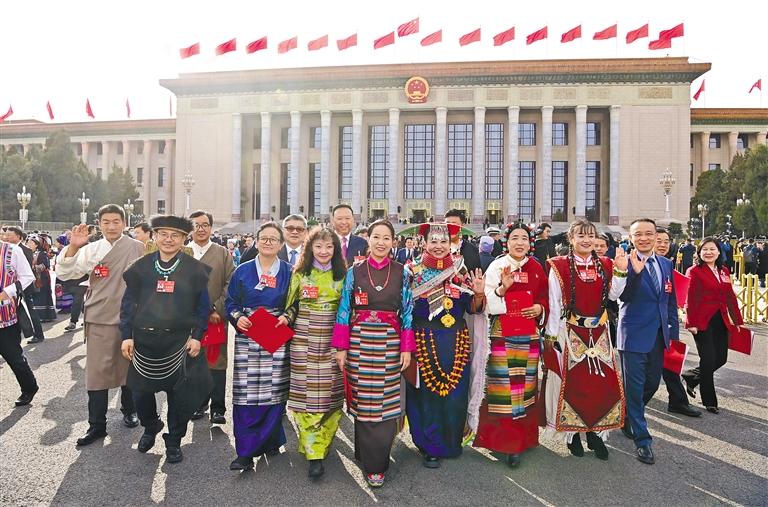 圖為(wei) 閉幕會(hui) 結束後,西藏全國人大代表信心滿懷走出會(hui) 場。旦增西旦 攝