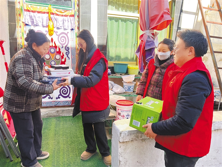 在嘎巴村熱組的困難戶邊巴家中,誌願者們(men) 在送上了實用的慰問品後,為(wei) 他詳細解讀了與(yu) 他生活息息相關(guan) 的醫保等相關(guan) 政策。誌願者的關(guan) 懷和服務讓他感動,邊巴說:“你們(men) 就是當代的活雷鋒,謝謝你們(men) !”