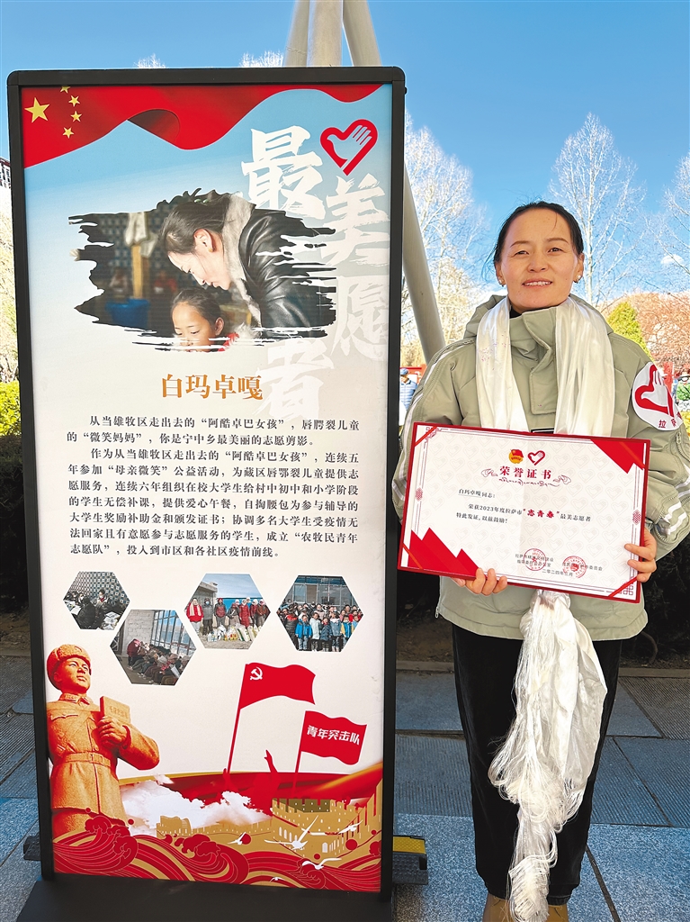 這是榮獲拉薩市2023年度“最美誌願者”稱號的白瑪卓嘎。