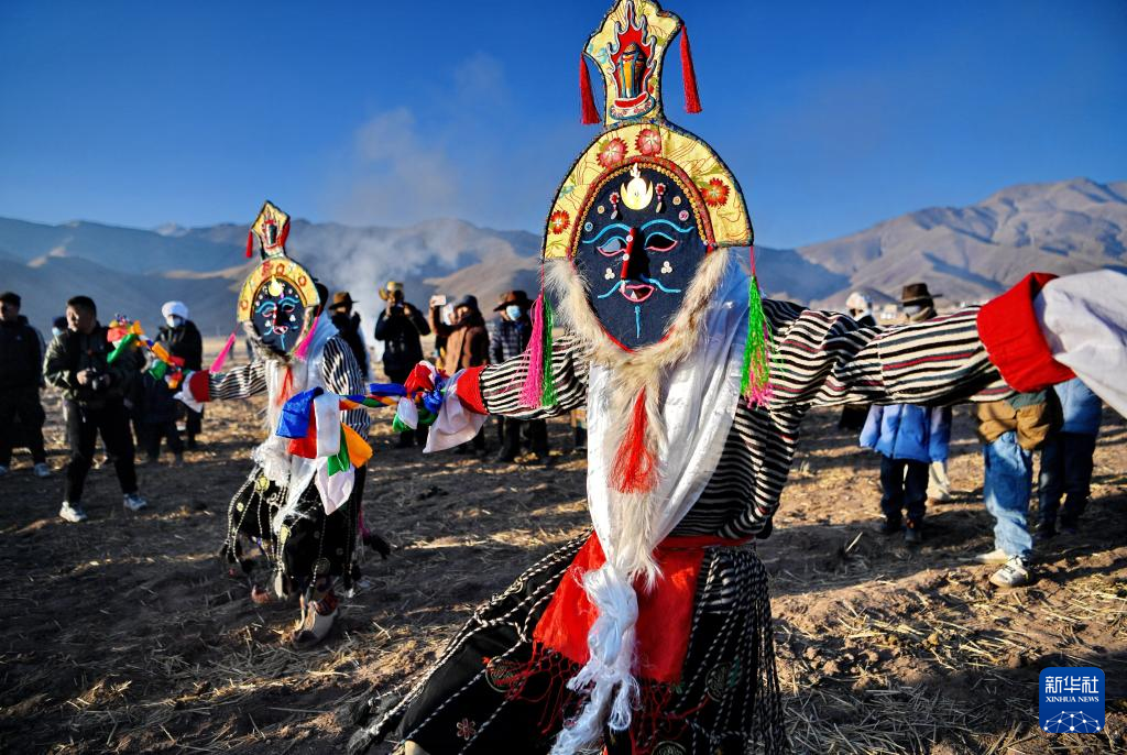 3月16日,在西藏拉薩市林周縣春堆鄉(xiang) 的春耕儀(yi) 式現場,當地群眾(zhong) 表演藏戲。新華社記者 張汝鋒 攝