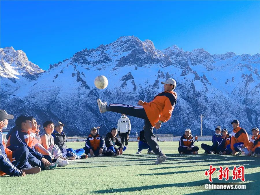 2022年11月25日,西藏那曲市嘉黎縣中學的高原球場上學生們(men) 在進行足球訓練。據了解,這座海拔4500米的高原球場是全校2500餘(yu) 名學生上體(ti) 育課的地方,也是訓練足球的場地。色曲多吉 攝