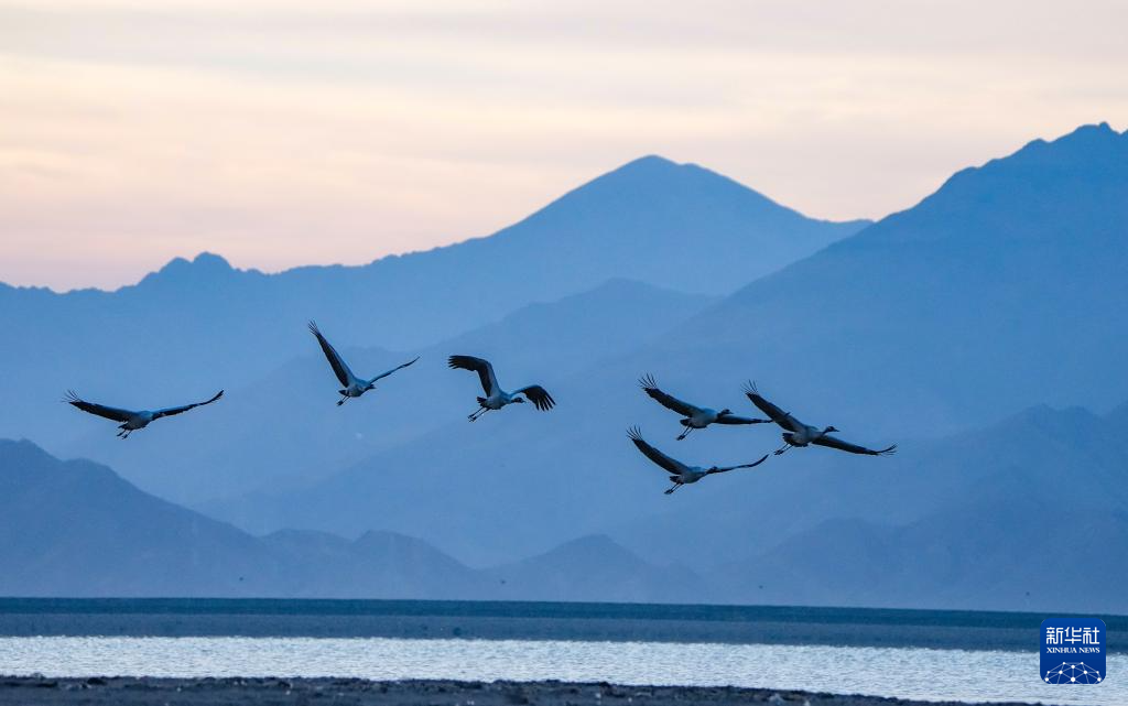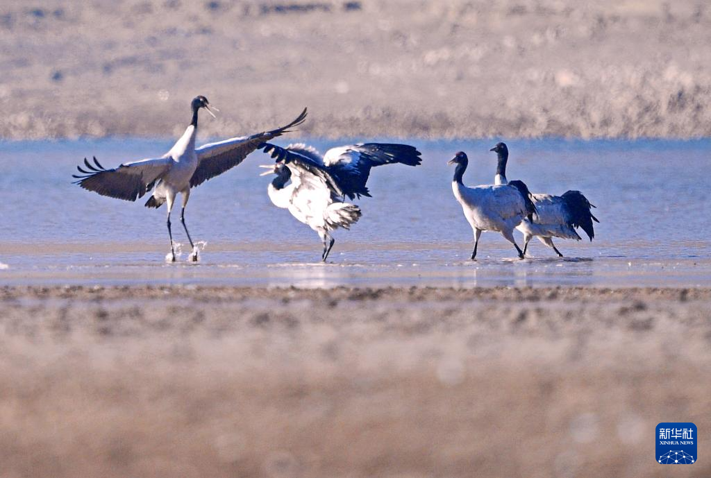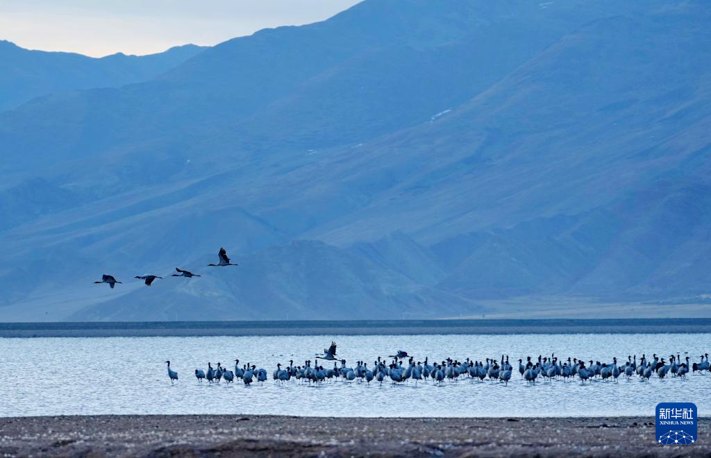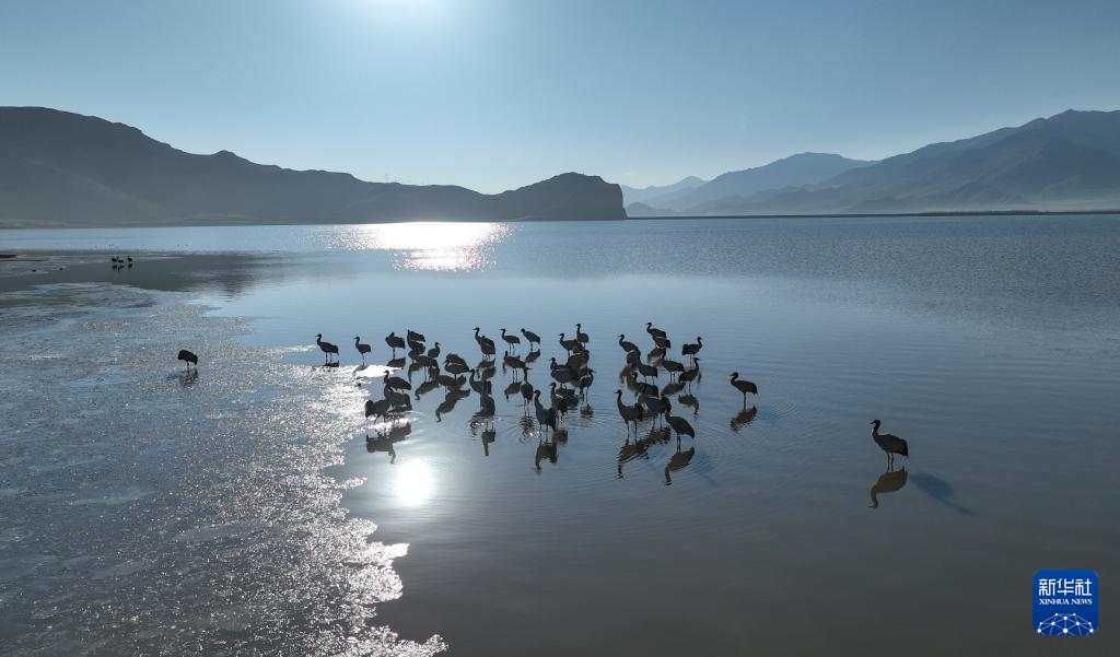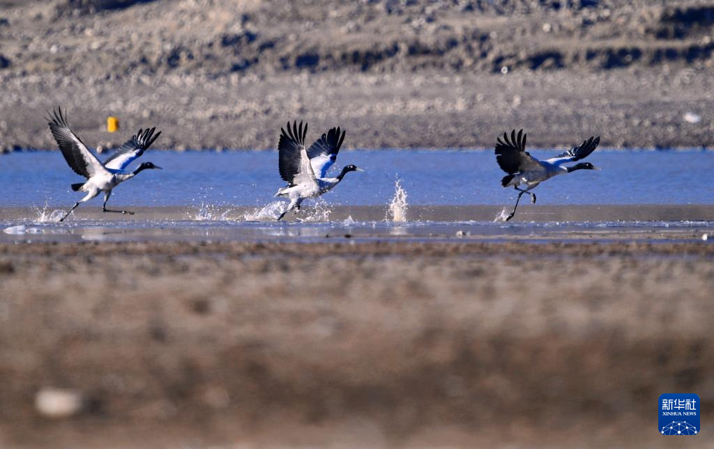 隨著氣候轉暖,位於(yu) 雅魯藏布江中遊河穀黑頸鶴國家級自然保護區內(nei) 的西藏拉薩林周縣虎頭山水庫漸漸喧鬧起來,在此越冬的黑頸鶴開始春季遷徙,飛往色林錯黑頸鶴國家級自然保護區、羌塘國家級自然保護區以及甘肅、青海等地。