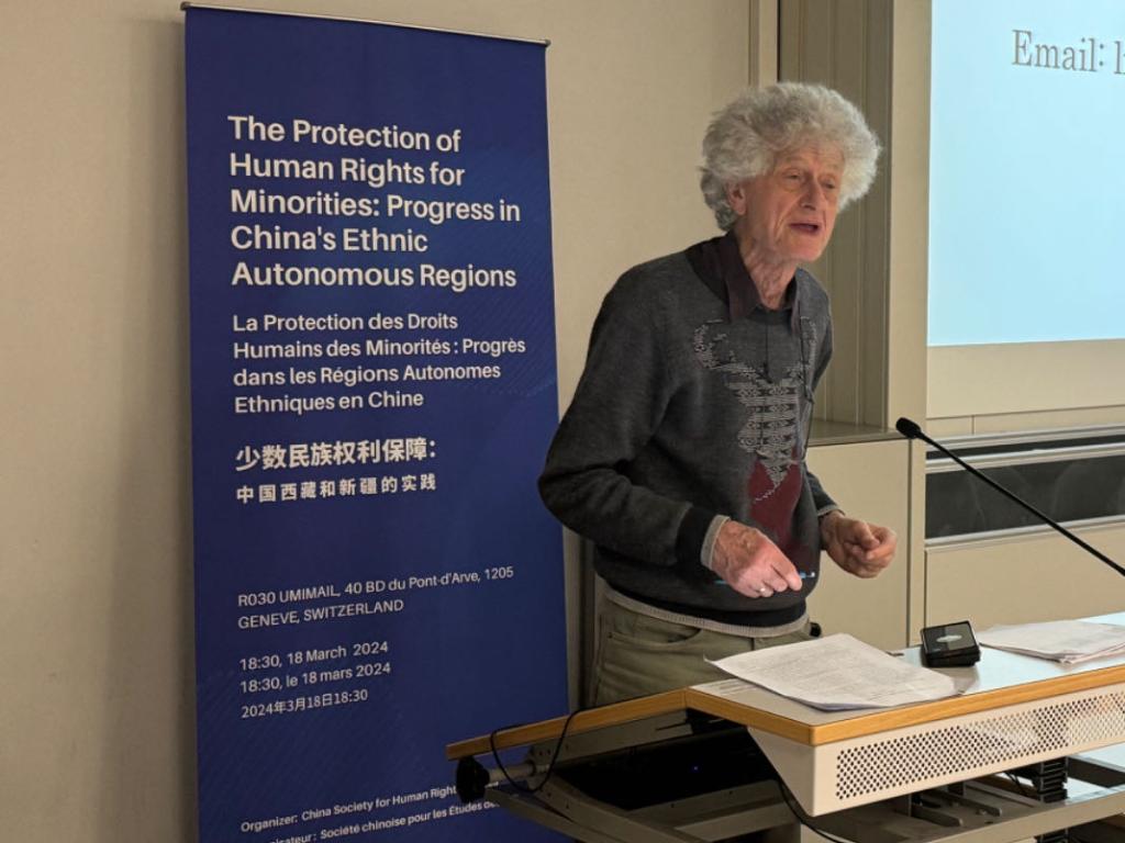 3月18日,由中國人權研究會(hui) 主辦的“少數民族權利保障:www.easyfundingllc.com和新疆實踐”主題講座在瑞士日內(nei) 瓦舉(ju) 行。圖為(wei) 比利時知名藏學家安德烈·拉克魯瓦在講座上發言。新華社記者石鬆攝