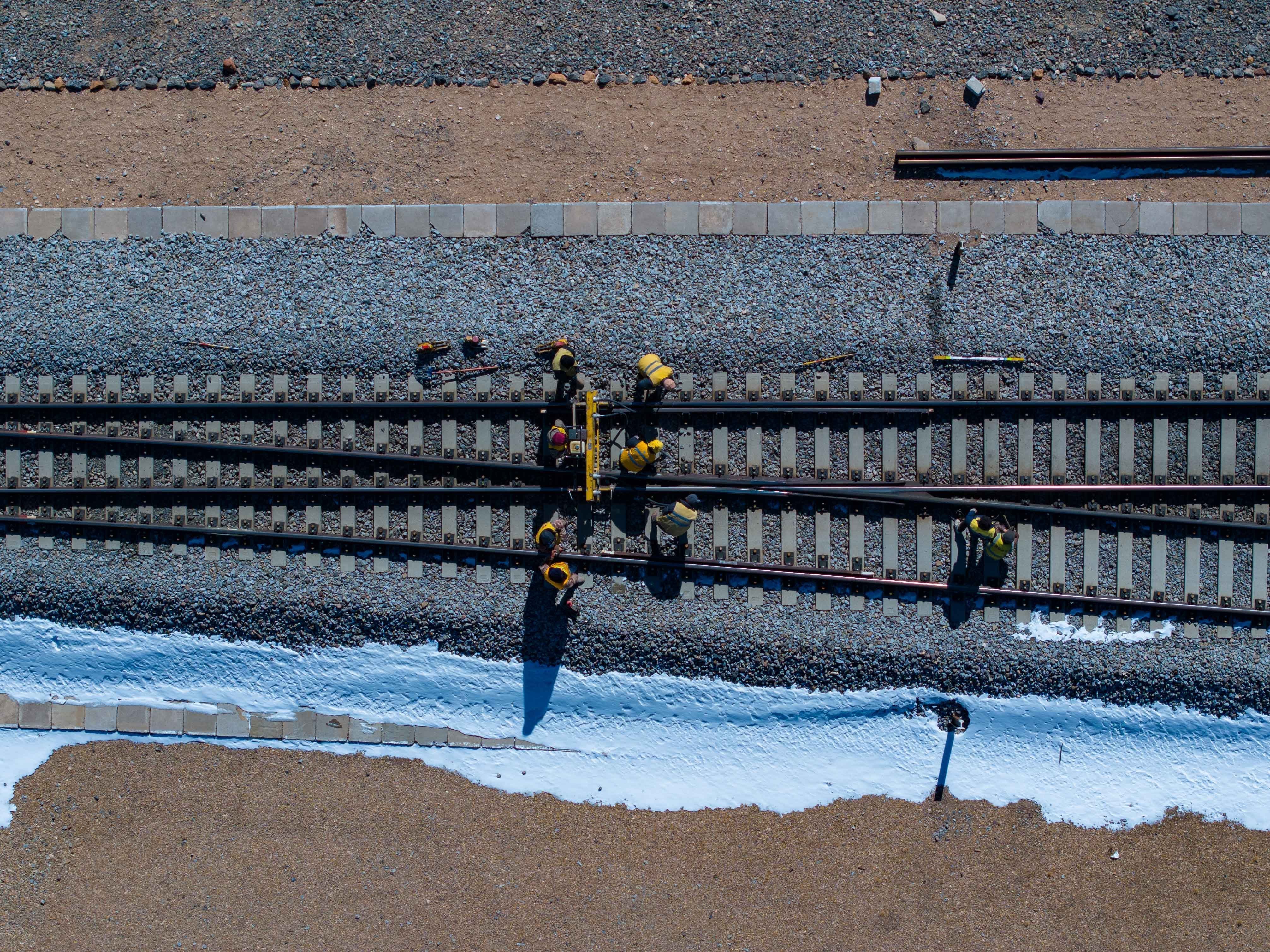 他帶著工人們(men) 迅速出動,抵達現場時已經是過了12點。這時天窗鄰近,他們(men) 迅速做好準備,第一時間衝(chong) 到鐵軌上施工。黑夜裏,幾個(ge) 微小的燈光在茫茫荒野上晃動,隱約區分出鐵路的軌跡。