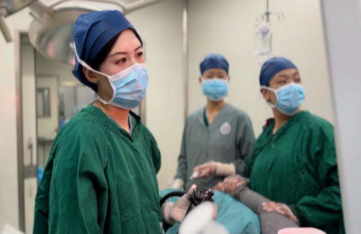 圖為(wei) 趙曉蕾醫生為(wei) 患者進行內(nei) 鏡下治療