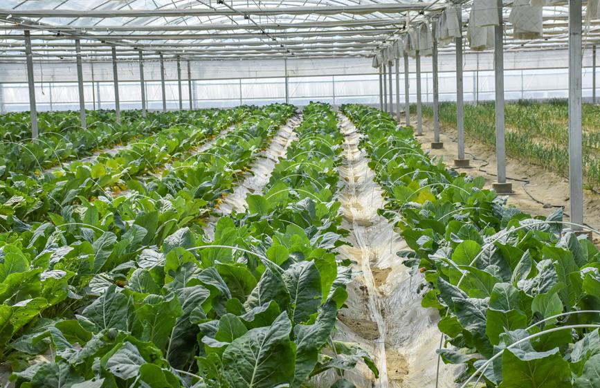 戈壁設施農(nong) 業(ye) ,不是簡單地在戈壁灘上開墾土地發展農(nong) 業(ye) ,而是要將光、熱、水、肥、土壤等一係列生產(chan) 要素進行合理配置。綠之源的規劃建設,走出了一條節地、節水、高效循環的戈壁生態農(nong) 業(ye) 發展路子。節地,充分利用了閑置的戈壁荒灘資源,不占耕地,有效解決(jue) 了菜糧爭(zheng) 地矛盾;節水,日光溫室作物生產(chan) ,全部配套了膜下滴灌技術,使有限的水資源得到了高效利用;高效循環,溫室采取“套種”種植模式,讓土地不空茬,連作多種作物,有效提高溫室利用率,實現“全年種植、全年采收”,改善了土壤沙化環境,提升了土壤地力,更是提高了蔬菜品質。