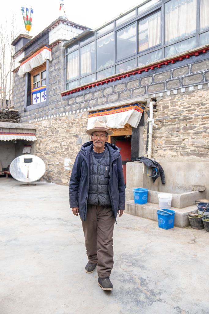 次旦說,平時二女兒(er) 央金在家照顧他的生活,女婿外出務工。次旦老人生活閑適,村裏一有文藝演出,他就過去觀看。