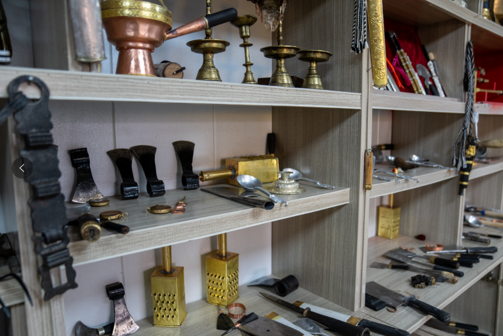 在瓊結縣政府相關(guan) 部門的支持下,2022年,多吉成立了瓊結縣德慶村多吉鐵藝專(zhuan) 業(ye) 合作社。如今,多吉家的院子裏擺放著各種鐵器半成品,屋子裏擺放著藏刀、鐵鎖、酒壺、水桶等。