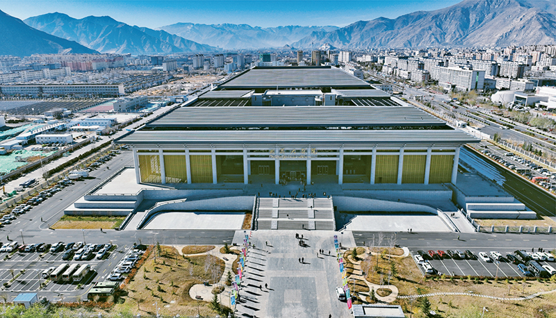 2023年12月15日,西藏大劇院開台演出活動舉(ju) 行,西藏文化新地標西藏大劇院正式啟用。圖為(wei) 空中俯瞰西藏大劇院(無人機照片)。 新華社記者 晉美多吉/攝