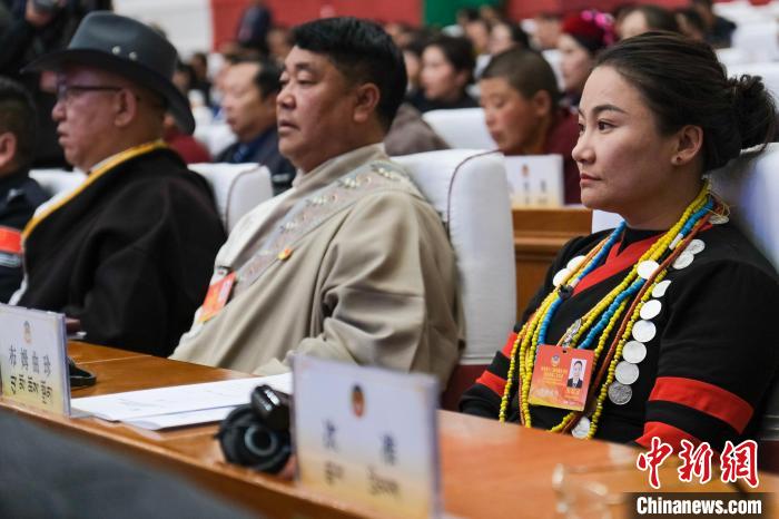 資料圖為(wei) 2024年1月9日,西藏自治區兩(liang) 會(hui) 期間,少數民族界政協委員、墨脫縣達木珞巴民族鄉(xiang) 女鄉(xiang) 長布姆曲珍(右一)在拉薩參會(hui) 。江飛波 攝