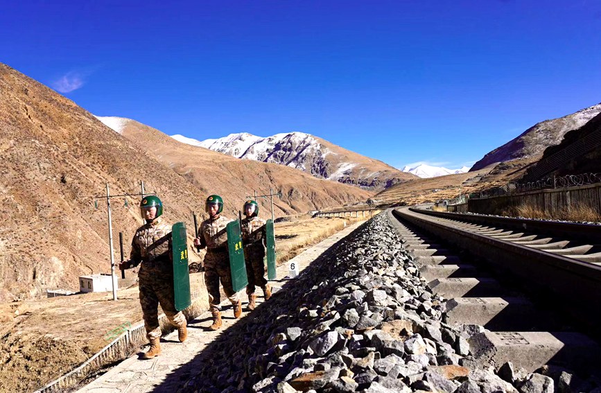 武警戰士在鐵路沿線巡邏。采訪對象提供