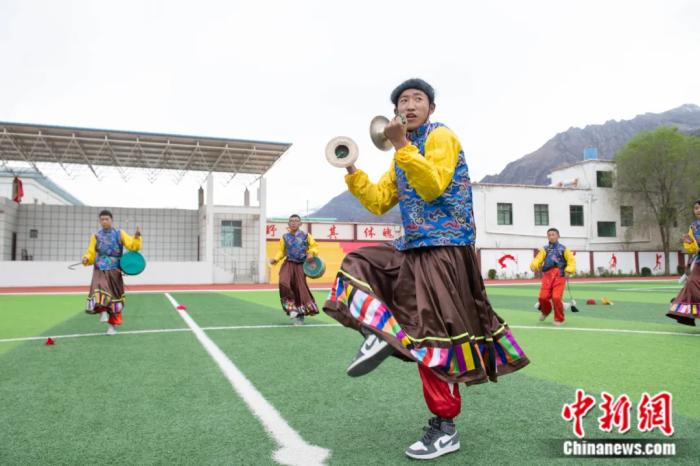 西藏加查縣中學學生在練習(xi) 非遺昌果卓舞。貢嘎來鬆 攝