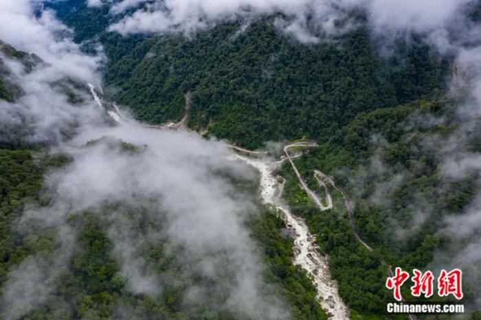 航拍首條進入西藏墨脫的公路紮墨公路。何蓬磊 攝
