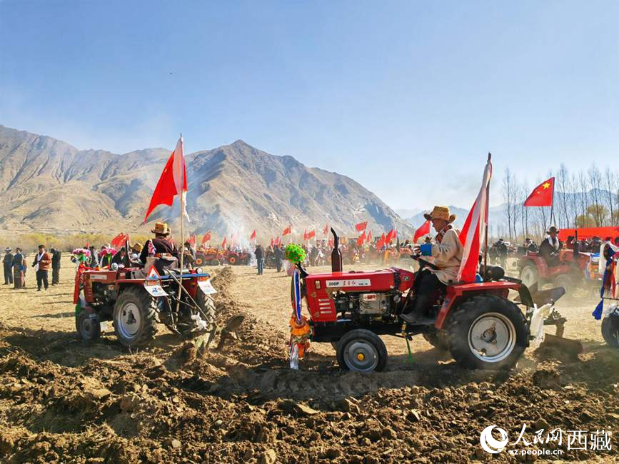 西藏自治區山南市乃東(dong) 區昌珠鎮克鬆社區居民身著盛裝齊聚田野,在歡快的舞曲中迎來了春耕。