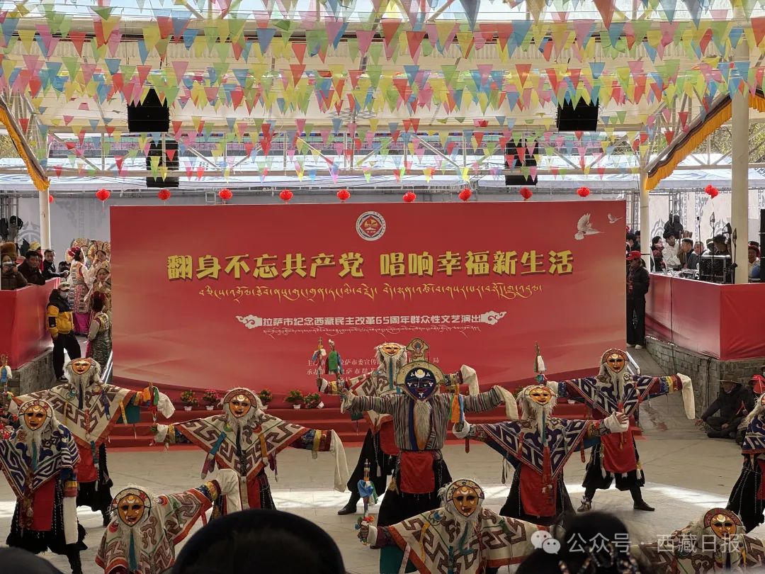 拉薩市紀念西藏民主改革65周年群眾(zhong) 性文藝演出在宗角祿康公園舉(ju) 行。