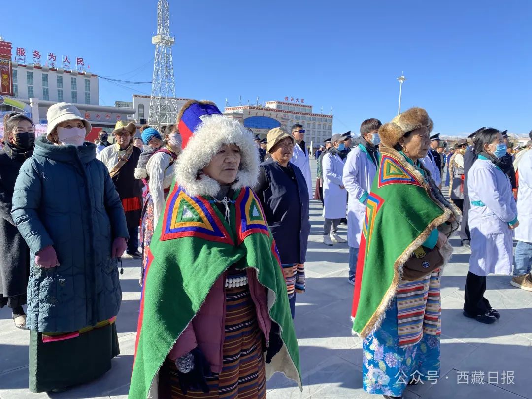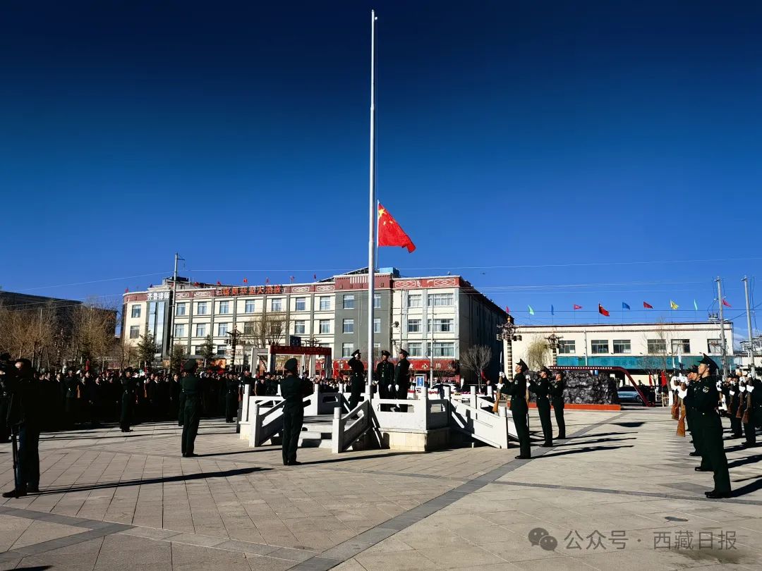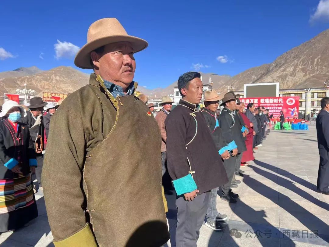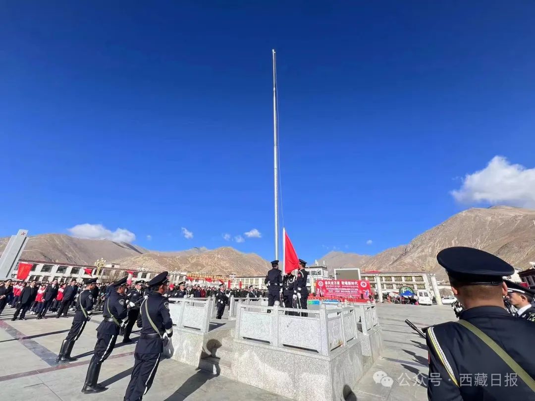 日喀則市南木林縣各族幹部群眾(zhong) 1500餘(yu) 人聚集在民族團結廣場舉(ju) 行紀念西藏百萬(wan) 農(nong) 奴解放65周年升國旗唱國歌儀(yi) 式。