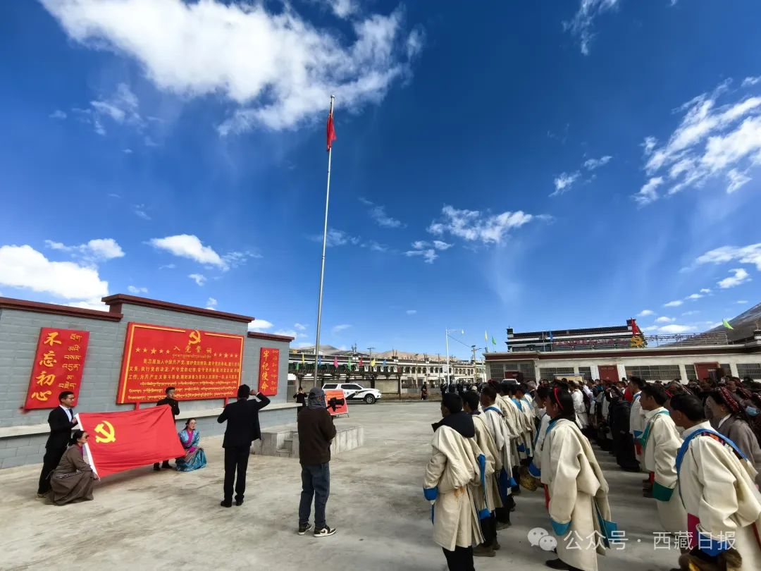 昌都市洛隆縣中亦鄉(xiang) 中亦村組織舉(ju) 行紀念西藏百萬(wan) 農(nong) 奴解放65周年升國旗儀(yi) 式。
