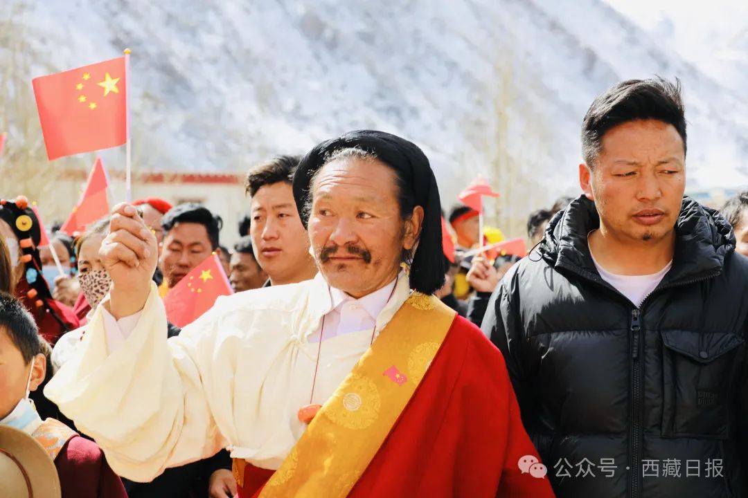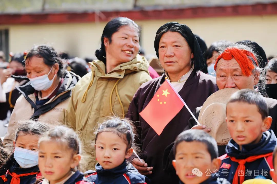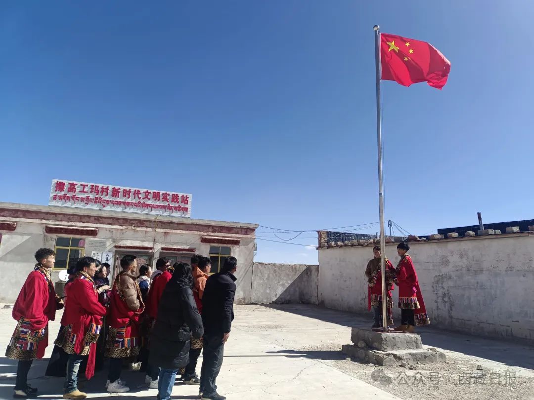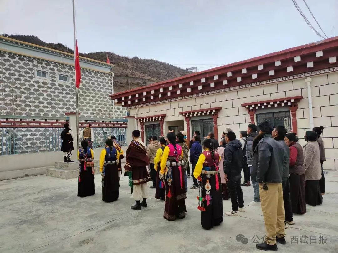 日喀則市薩迦縣麻布加鄉(xiang) 舉(ju) 行“叫我們(men) 怎麽(me) 不歌唱”紀念西藏民主改革65周年升國旗唱國歌儀(yi) 式。