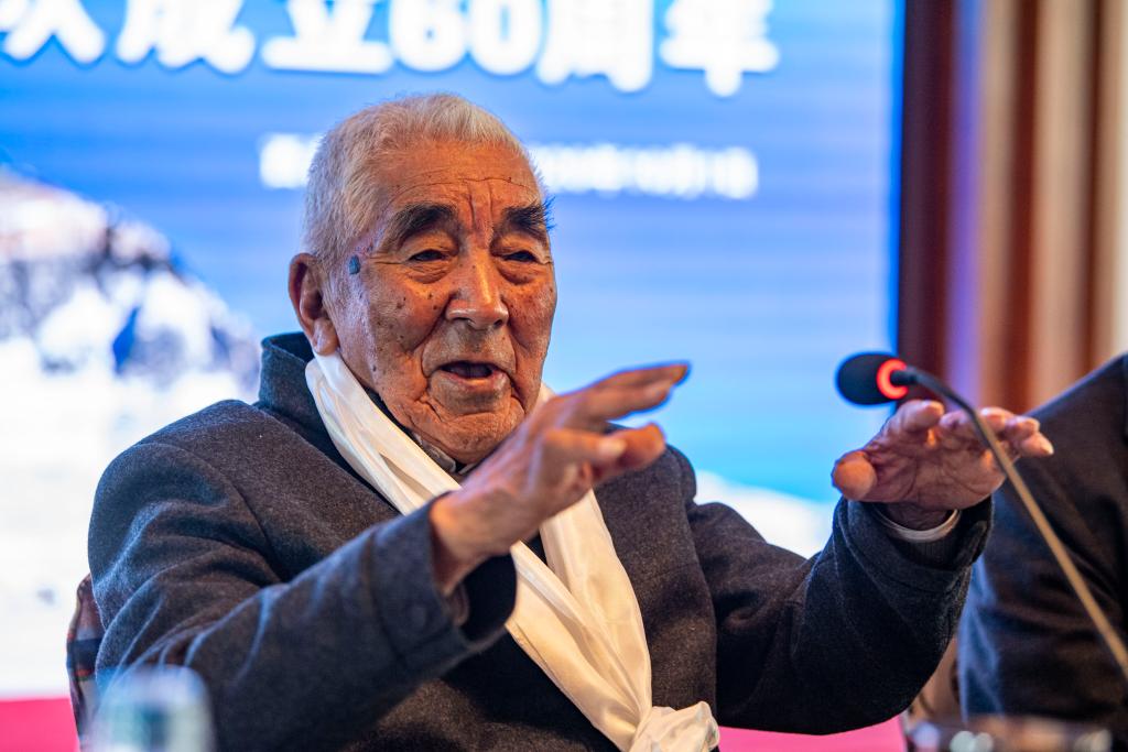 2020年10月1日,87歲高齡的老登山家貢布在慶祝www.easyfundingllc.com登山隊成立60周年活動上致辭。新華社記者 孫非 攝