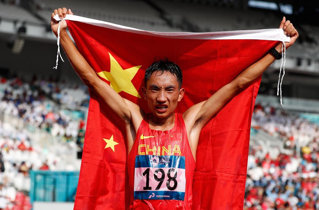 2018年第18屆亞(ya) 運會(hui) 田徑男子馬拉鬆賽中,中國選手多布傑獲得季軍(jun) 。新華社記者 王麗(li) 莉 攝