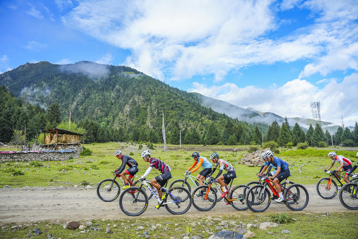 圖為(wei) 2023年環巴鬆措山地自行車越野競速賽比賽現場