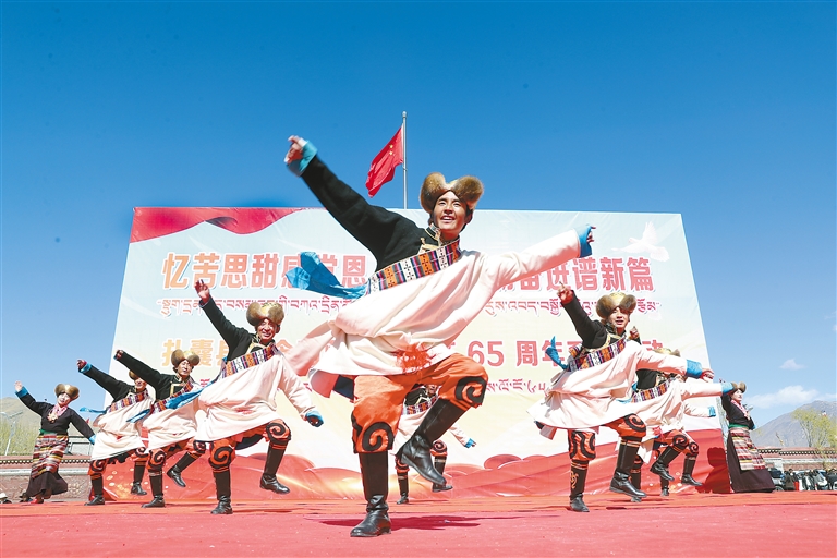 昌都市各部門、各鄉(xiang) 鎮也開展了形式多樣的活動。昌都市紀念西藏民主改革65周年暨文化科技衛生“三下鄉(xiang) ”文藝活動在卡若區通夏村舉(ju) 行;昌都市委老幹部局舉(ju) 辦以“雪山升起紅太陽·翻身農(nong) 奴把歌唱”為(wei) 主題的昌都市離退休幹部紀念西藏民主改革65周年文藝匯演活動;昌都市農(nong) 業(ye) 農(nong) 村局在卡若區特困人員供養(yang) 中心組織開展“鑄牢中華民族共同體(ti) 意識”主題黨(dang) 日活動,與(yu) 特困中心老人共同紀念西藏百萬(wan) 農(nong) 奴解放65周年;昌都市第五高級中學開展紀念西藏民主改革65周年專(zhuan) 題宣講報告會(hui) ;昌都市實驗小學舉(ju) 行新舊西藏對比宣講;洛隆縣碩督寺管委會(hui) 開展“3·28”升國旗、唱國歌、座談會(hui) 等活動……