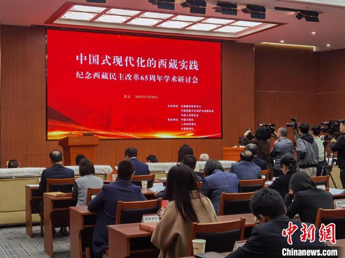 紀念西藏民主改革65周年學術研討會(hui) 28日在北京舉(ju) 行。會(hui) 議以“中國式現代化的西藏實踐”為(wei) 主題,多位學者圍繞西藏民主改革、西藏高質量發展及新時代西藏故事的國際化傳(chuan) 播等議題展開研討。