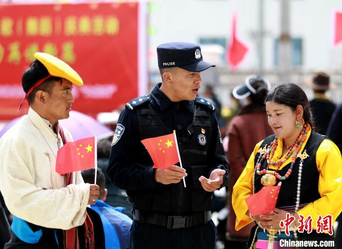 28日,西藏自治區日喀則市吉隆出入境邊防檢查站移民管理警察與(yu) 駐地各單位幹部職工及當地民眾(zhong) 共同開展係列活動紀念西藏民主改革65周年。