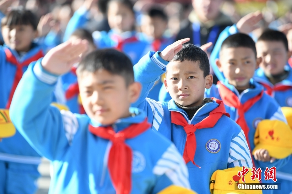 3月28日,西藏各族各界人士聚集在拉薩布達拉宮廣場,升國旗、唱國歌,參加西藏百萬(wan) 農(nong) 奴解放65周年紀念活動。圖為(wei) 升國旗儀(yi) 上的學生代表。中新社記者 貢嘎來鬆 攝