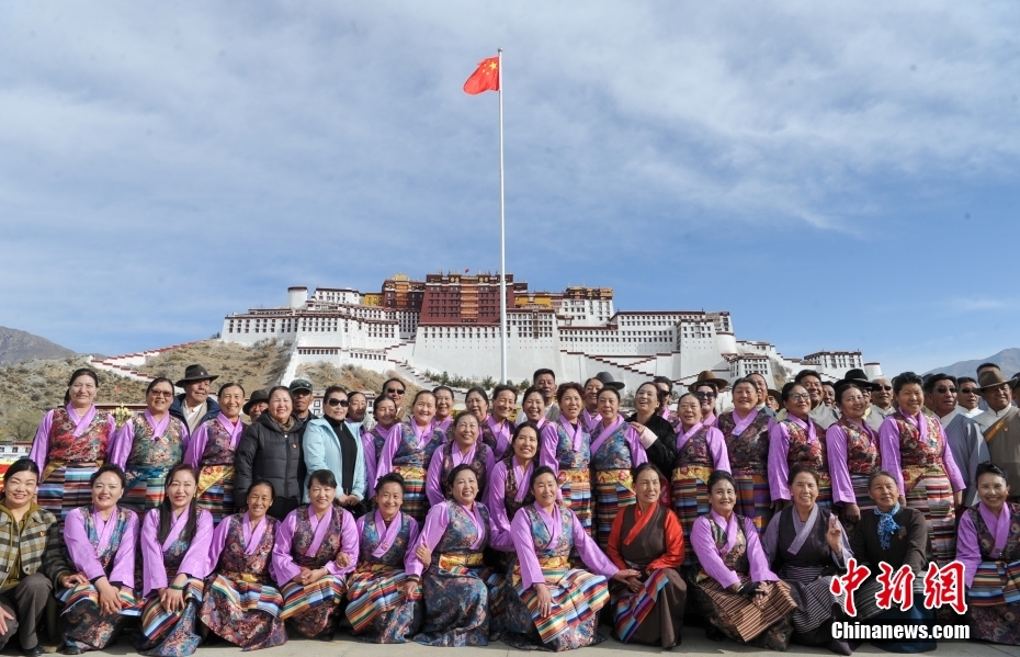 3月28日,西藏各族各界人士聚集在拉薩布達拉宮廣場,升國旗、唱國歌,參加西藏百萬(wan) 農(nong) 奴解放65周年紀念活動。圖為(wei) 民眾(zhong) 身著盛裝在布達拉宮廣場留影。中新社記者 貢嘎來鬆 攝