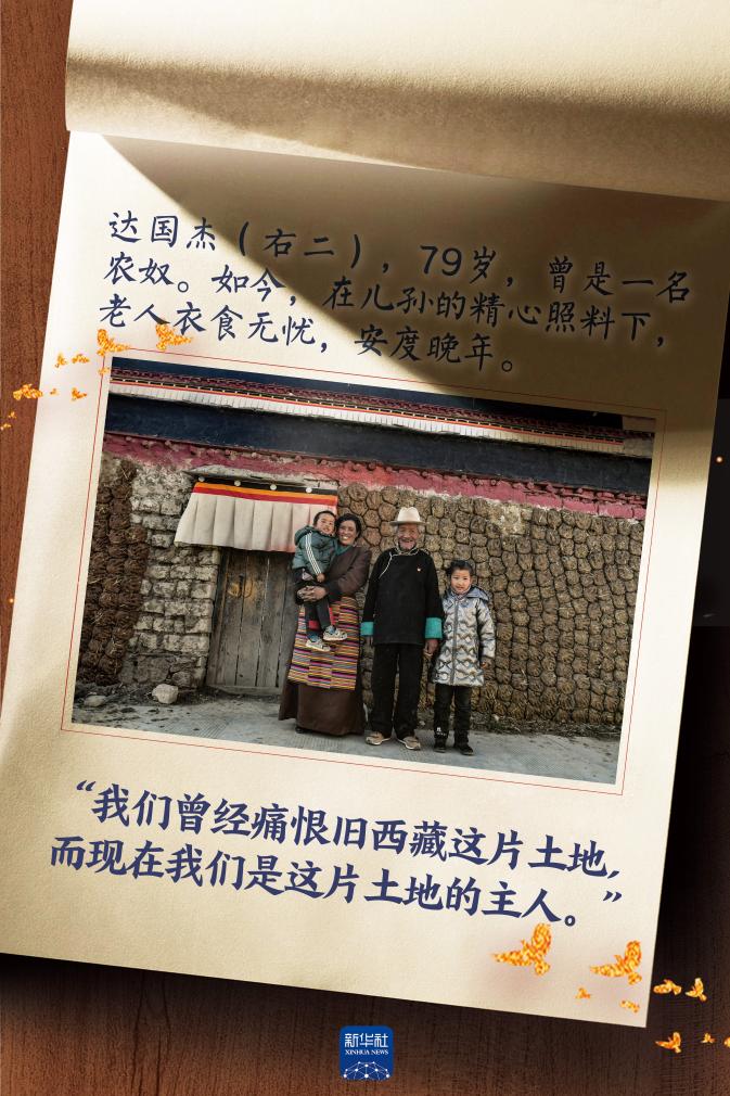 “民主改革後我才真正睡了一個(ge) 踏實覺,不再沒日沒夜地支差役,也不用挨農(nong) 奴主的皮鞭了。”那年,達國傑一家分得了50畝(mu) 地、1頭牛、1匹馬和15隻羊。“有了自己的土地,幹再累的活都是開心的。那一年我第一次吃糌粑可以吃到撐,真正體(ti) 會(hui) 到了做人的滋味。”