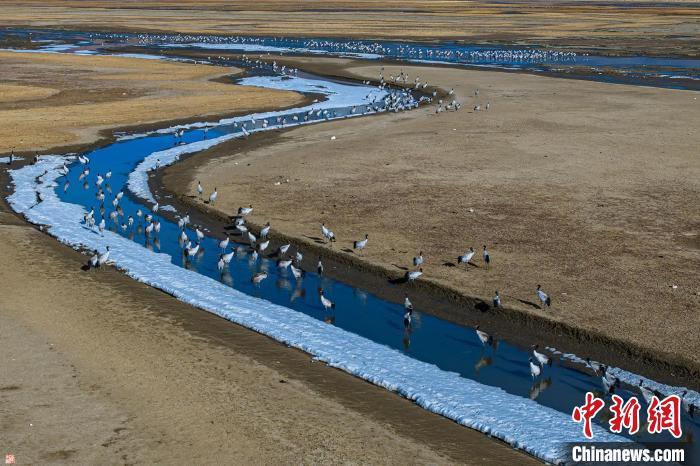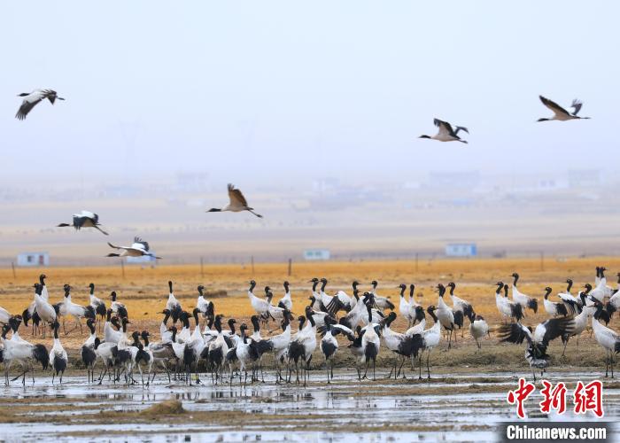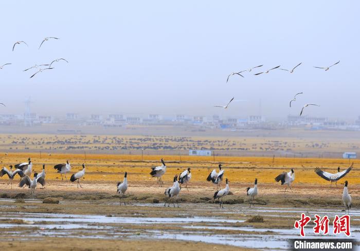 通常,黑頸鶴“返航”需飛行3-5天,當雄縣阿熱濕地是大部分北上的黑頸鶴往返遷徙的中轉站。作為(wei) 拉薩市級濕地自然保護區中麵積最大、海拔最高的濕地,阿熱濕地因其特殊的生態環境孕育著眾(zhong) 多珍稀水禽鳥獸(shou) 和濕地植物,黑頸鶴們(men) 在這裏中轉休息,養(yang) 精蓄銳後再次踏上遷徙之途。