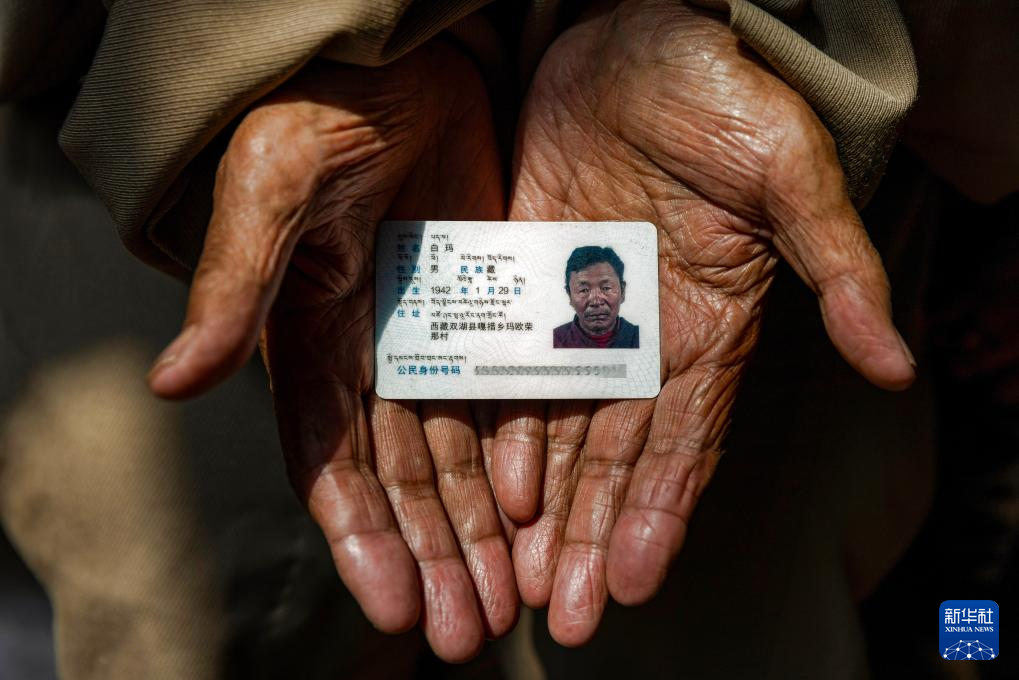 白瑪老人展示自己的身份證(3月27日攝)。新華社記者 薑帆 攝